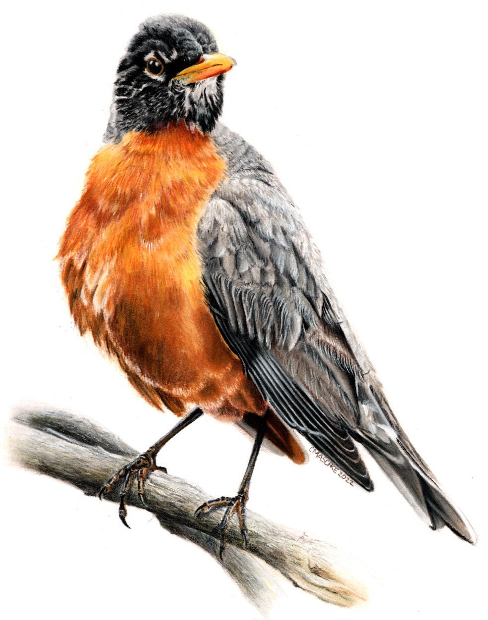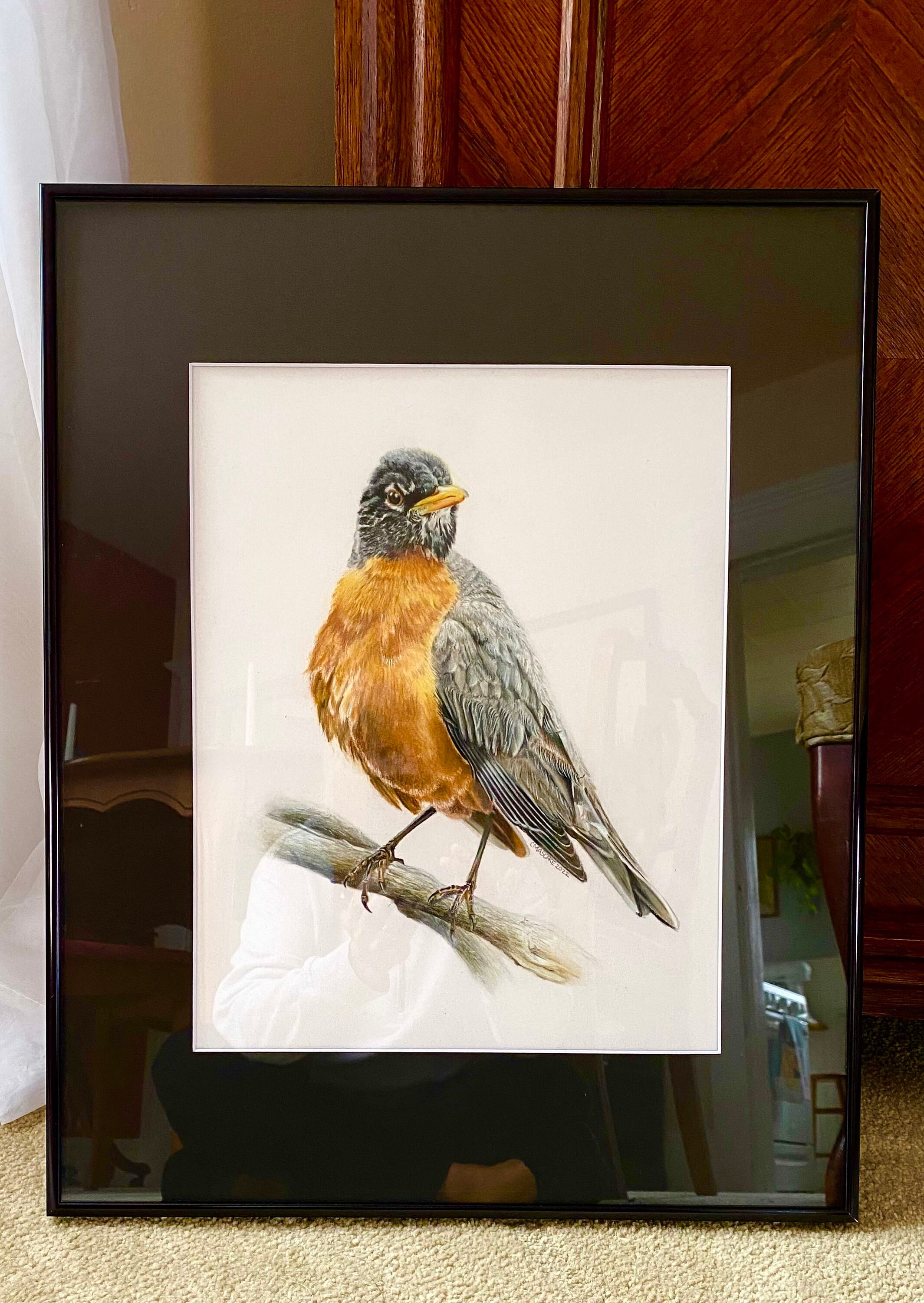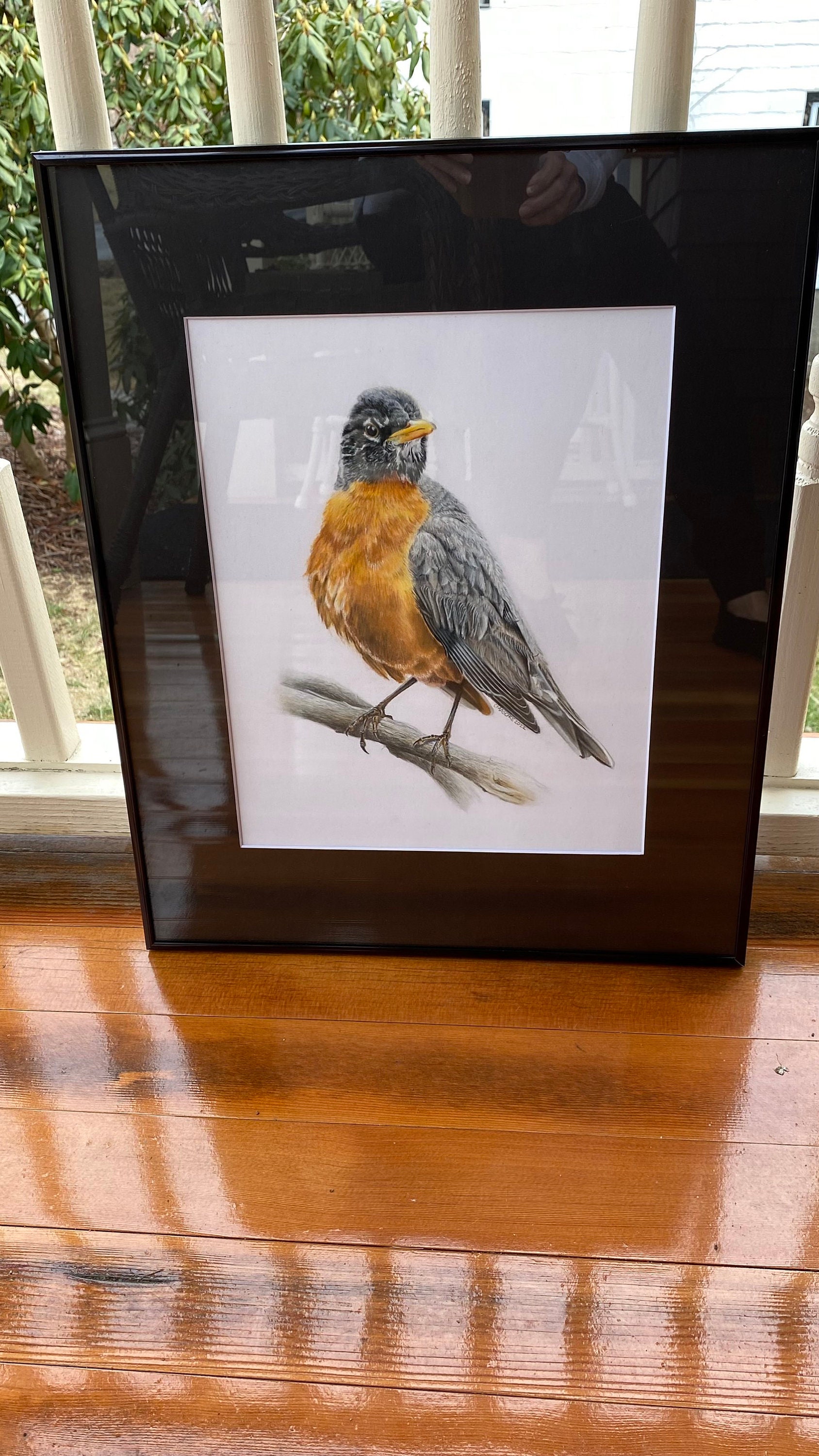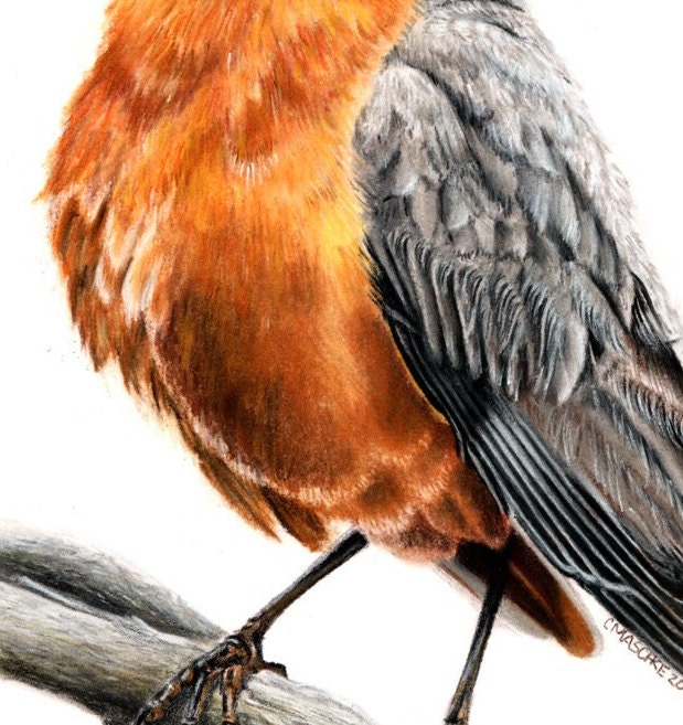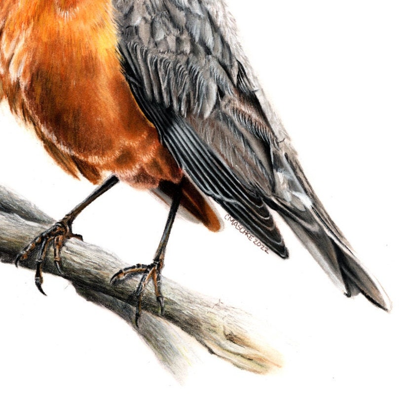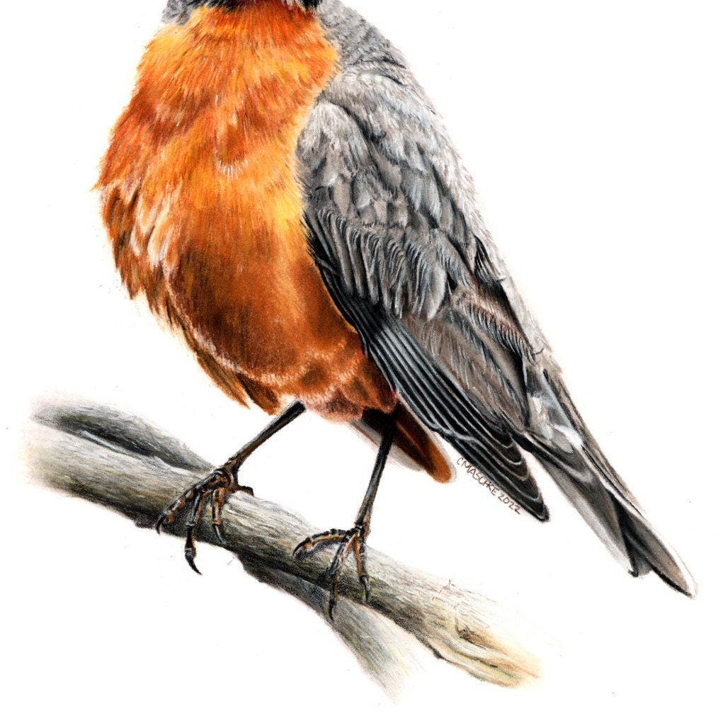 American Robin is my original colored pencil and pastel drawing on Bristol Vellum. It is mounted in a black mat and ready to drop into a standard 16 x 20 frame. This drawing is the perfect gift for the person in your life that appreciates fine art and enjoys birds or bird watching.